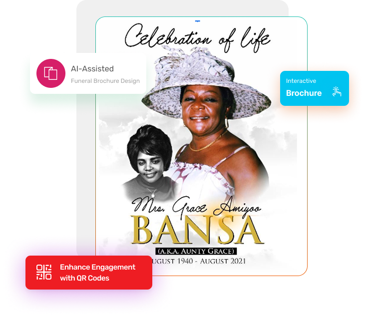 Integration of QR codes linking to online condolence book, donation links, and digital memorials.